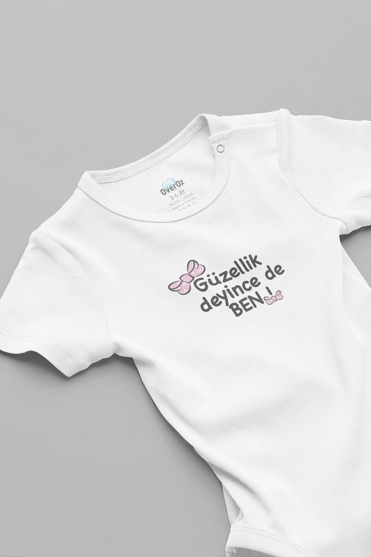 Güzellik Deyince de Ben Baskılı Çıtçıtlı Kısa Kollu Bebek Body Zıbın Tulum Badi 5934